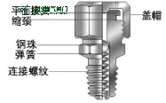 注脂嘴一般由蓋帽、鋼珠、彈簧和帶連接螺紋的本體幾部分組成,典型結(jié)構(gòu),如下頁圖2所示。從結(jié)構(gòu)可見,注脂接頭一般采用底部壓邊結(jié)構(gòu)將彈簧、鋼珠限制在注脂接頭本體內(nèi)。
