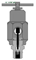 將SO-BV工具連接到注脂嘴上之前,首先逆時針旋轉(zhuǎn)SO-BV工具上的T型手柄使頂桿上行至最大位置,然后拆除密封注脂接頭上的金屬蓋帽,將SO-BV工具連接在注脂接頭的螺紋上并旋緊。然后順時針旋轉(zhuǎn)SO-BV工具上的T型手柄,頂桿下行,使得注脂接頭內(nèi)的球形止回閥“離座”,可以使得閥體內(nèi)的物質(zhì)通過泄放孔和后端的閥門被釋放出(如下頁圖7)。